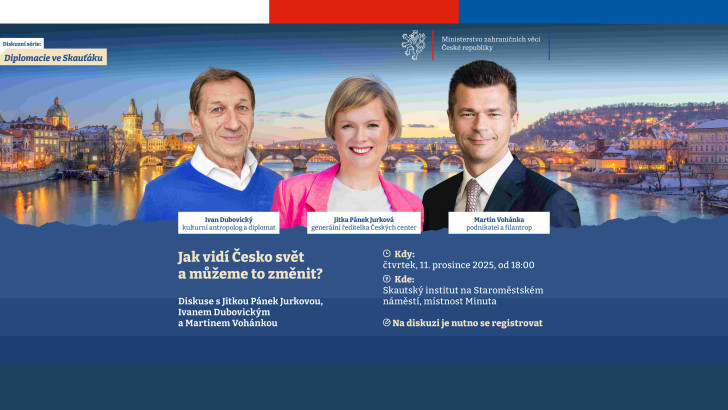 Diskuse se uskuteční ve čtvrtek 11. prosince 2025 od 18:00 v místnosti Minuta ve Skautském institutu na Staroměstském náměstí v Praze.