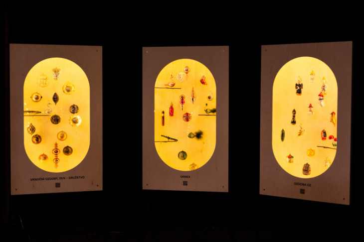 The Christmas Treasure exhibition opened at the Czech Centre Paris, presenting glass ornaments from seven major Czech glass companies. The opening and a guided tour with the participation of the exhibition curators Dagmar Havlíčková and Petr Nový from the Museum of Glass and Jewellery in Jablonec nad Nisou took place on 3 and 4 December 2021. Photo credit: Tereza Nováková